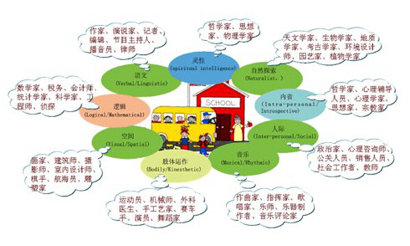 加德纳教授在大量科学研究的基础上提出了人类共有8个半种智力结构,他们彼此相互独立并以多元方式存在着。